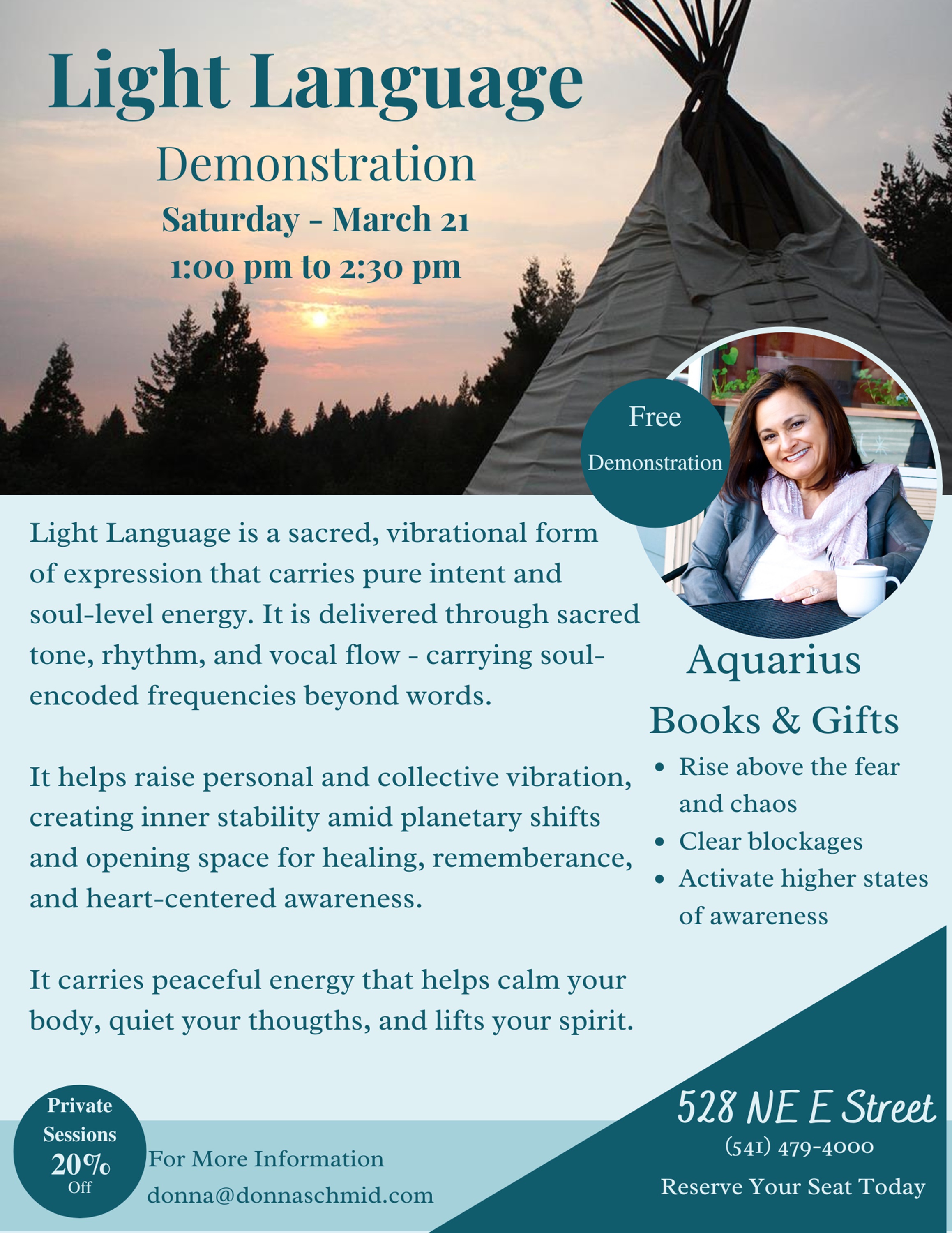 Metaphysical artwork and writings available at Aquarius Books & Gifts, Grants Pass, Oregon